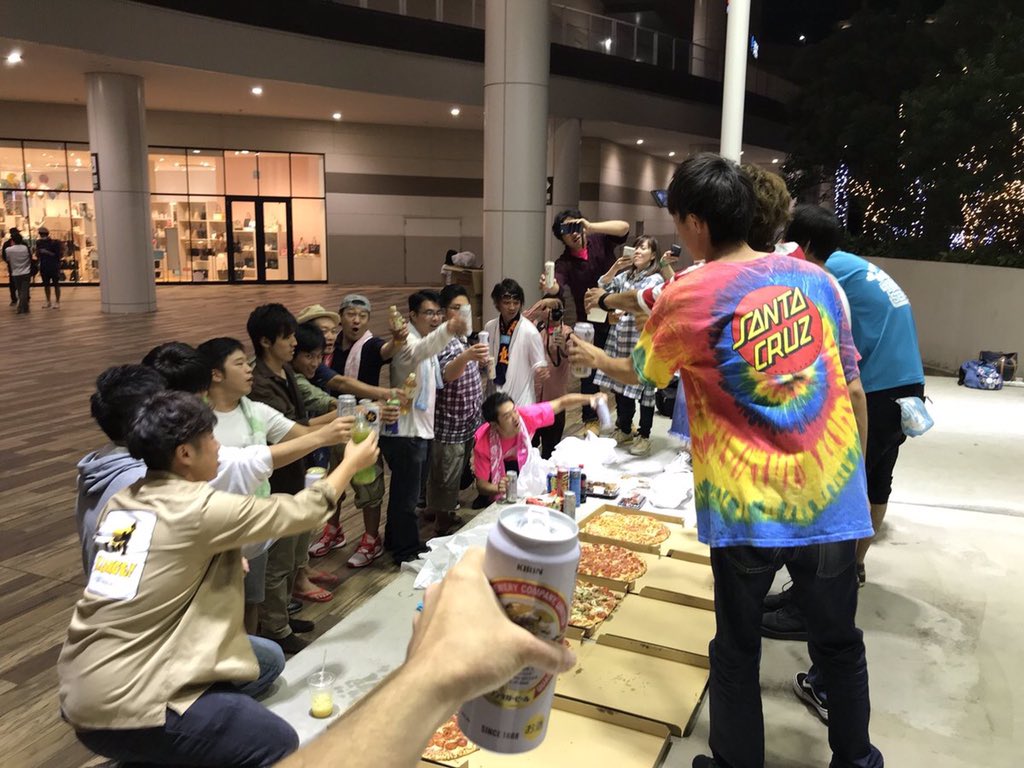 君たちには残念だけどこれイオンのスタッフにも運営にも承諾得てたよ。しかもイオンのスタッフから8時にはステージの照明消しちゃいますけど大丈夫ですか?って言われてた。