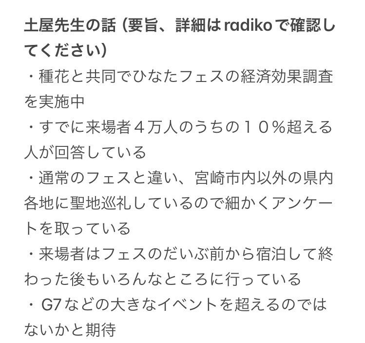 ただし事後のを見るには今回みたいに来場者多数にアンケート取らないと分からないからやってる所はなかなか無いな(交通機関代も事前に県外で買ったら県内消費分にはならないし)