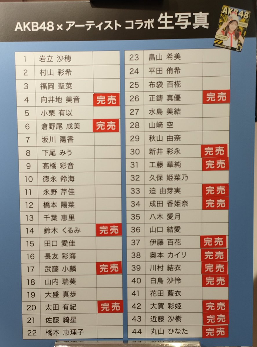 明らかに用意した枚数が少ないメンバーばかりが完売してるじゃねーか